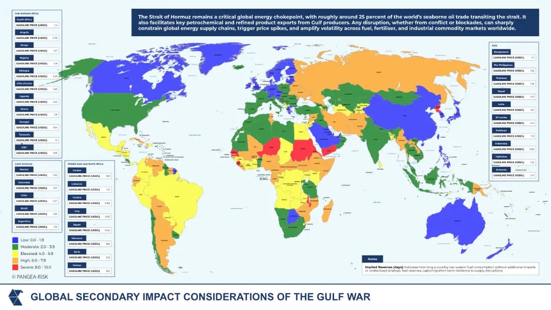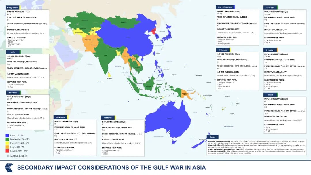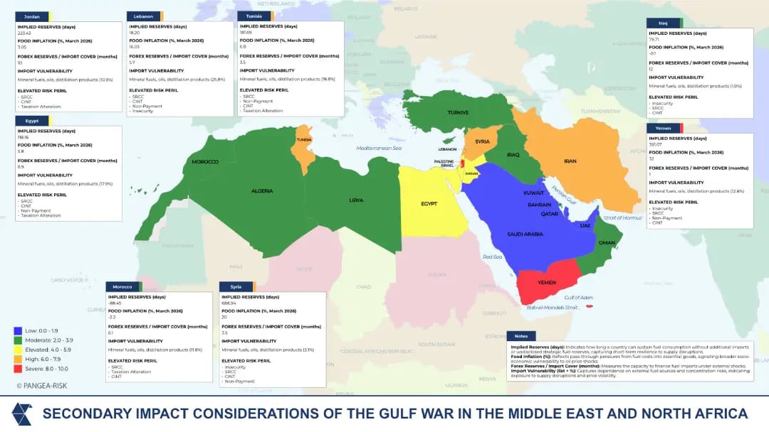 The Gulf War’s disruption to energy and commodity markets is now translating into a broader escalation of country risk perils across the Middle East and North Africa (MENA), Asia, Sub‑Saharan Africa (SSA), and even Latin America, increasingly exposed through second‑order transmission channels.